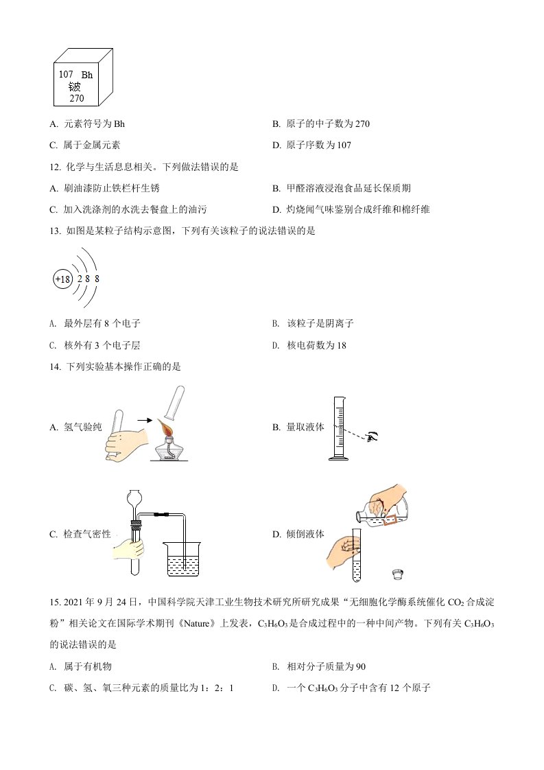2022年云南省昆明市中考化学真题(空白卷)_共9页