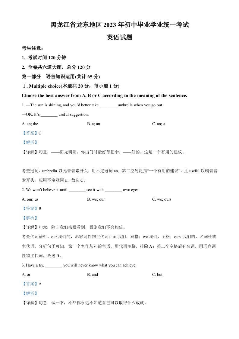 当前位置: 首页初中资源中考真题正文 2023年黑龙江省龙东地区中考英语真题(含答案)_共25页 中考真题 2 周前 0 0 15 以上为部分内容预览,如需源文档请登录您的会员账号进行下载! 声明:本站所有文章,如无特殊说明或标注,均为本站原创发布。任何个人或组织,在未征得本站同意时,禁止复制、盗用、采集、发布本站内容到任何网站、书籍等各类媒体平台。如若本站内容侵犯了原著者的合法权益,可联系我们进行处理。 尚学资源永久会员 打赏 收藏 海报 链接