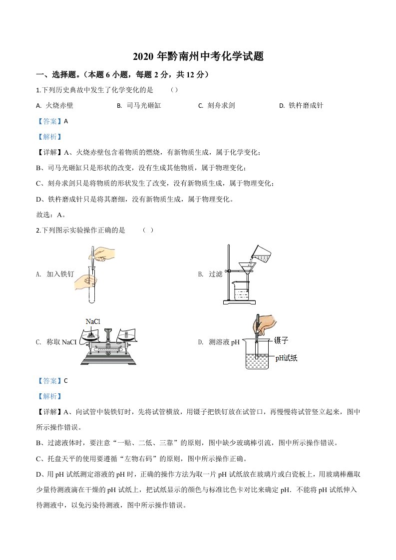 当前位置: 首页初中资源中考真题正文 贵州省黔南州2020年中考化学试题(含答案)_共12页 中考真题 2 周前 0 0 10 以上为部分内容预览,如需源文档请登录您的会员账号进行下载! 声明:本站所有文章,如无特殊说明或标注,均为本站原创发布。任何个人或组织,在未征得本站同意时,禁止复制、盗用、采集、发布本站内容到任何网站、书籍等各类媒体平台。如若本站内容侵犯了原著者的合法权益,可联系我们进行处理。 尚学资源永久会员 打赏 收藏 海报 链接