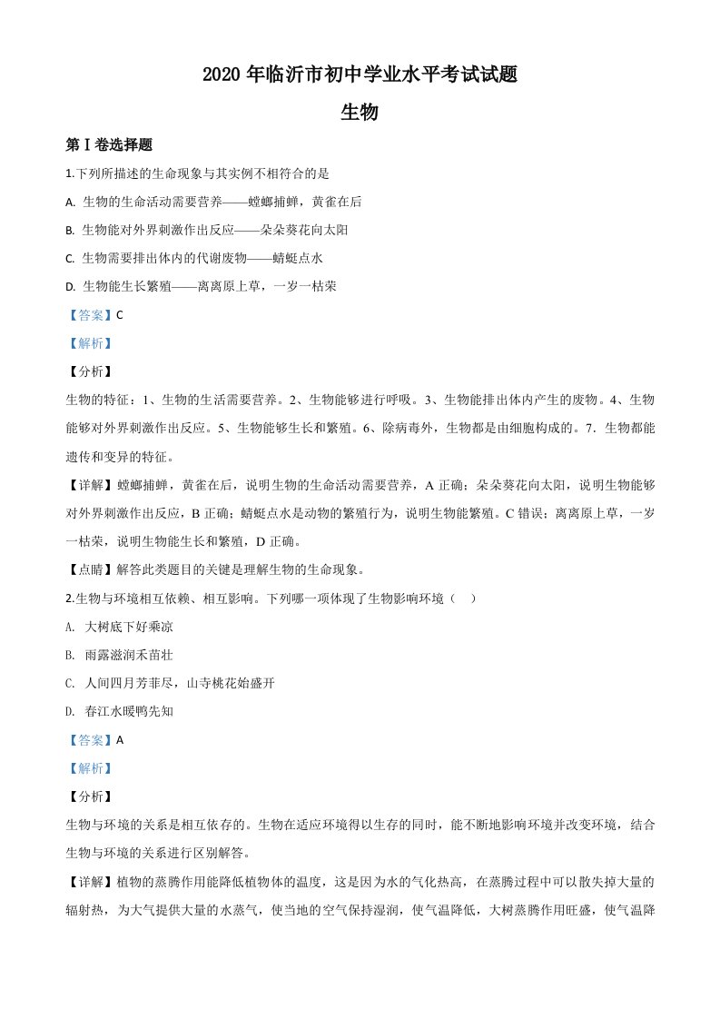 当前位置: 首页初中资源中考真题正文 山东省临沂市2020年中考生物试题(含答案)_共28页 中考真题 2 周前 0 0 15 以上为部分内容预览,如需源文档请登录您的会员账号进行下载! 声明:本站所有文章,如无特殊说明或标注,均为本站原创发布。任何个人或组织,在未征得本站同意时,禁止复制、盗用、采集、发布本站内容到任何网站、书籍等各类媒体平台。如若本站内容侵犯了原著者的合法权益,可联系我们进行处理。 尚学资源永久会员 打赏 收藏 海报 链接