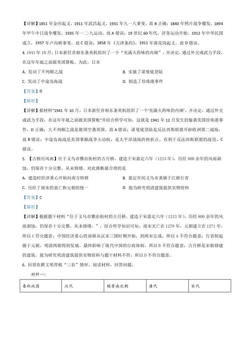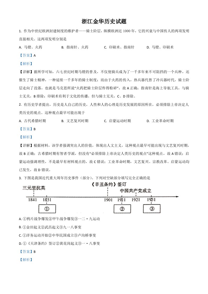 浙江省金华市2021年中考历史试题(含答案)_共4页