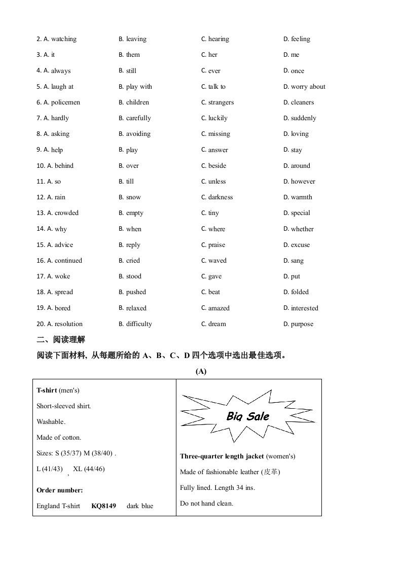 当前位置: 首页初中资源中考真题正文 浙江省宁波市2020年中考英语试题(空白卷)_共13页 中考真题 2 周前 0 0 10 以上为部分内容预览,如需源文档请登录您的会员账号进行下载! 声明:本站所有文章,如无特殊说明或标注,均为本站原创发布。任何个人或组织,在未征得本站同意时,禁止复制、盗用、采集、发布本站内容到任何网站、书籍等各类媒体平台。如若本站内容侵犯了原著者的合法权益,可联系我们进行处理。 尚学资源永久会员 打赏 收藏 海报 链接