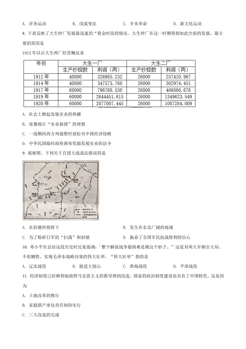 江苏省宿迁市2021年中考历史试题(空白卷)_共8页