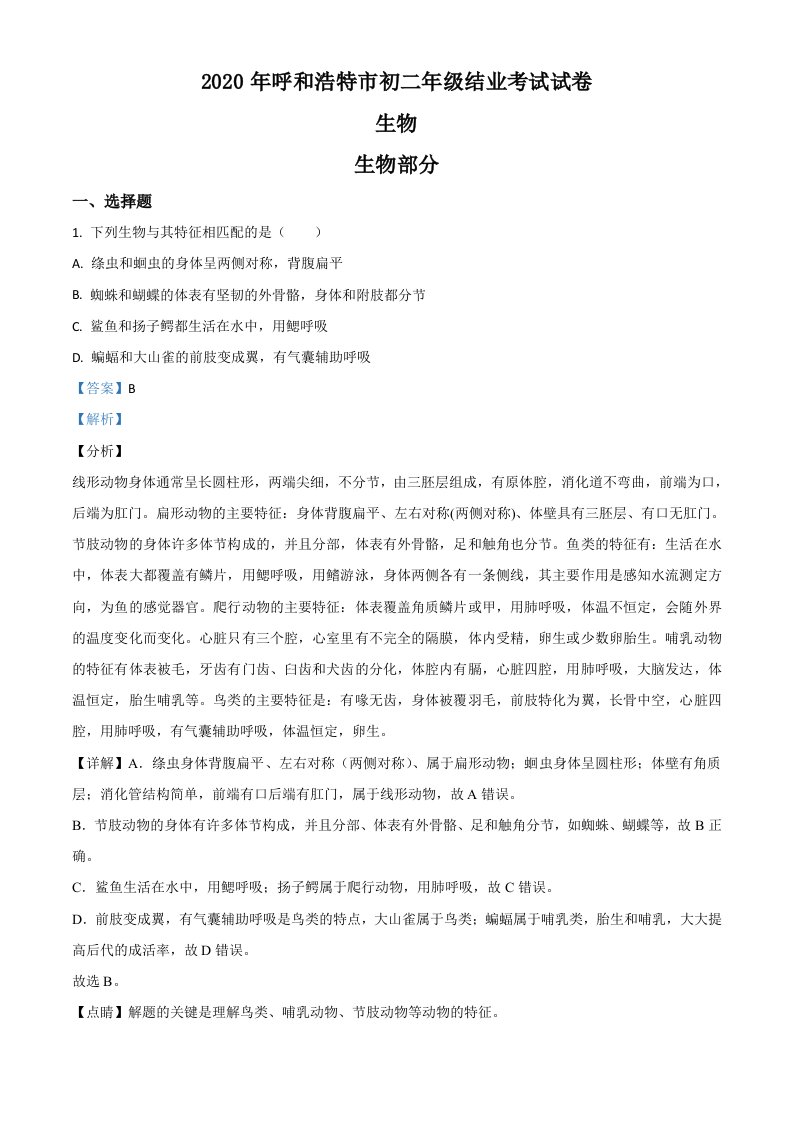 当前位置: 首页初中资源中考真题正文 内蒙古呼和浩特市2020年中考生物试题(含答案)_共18页 中考真题 2 周前 0 0 10 以上为部分内容预览,如需源文档请登录您的会员账号进行下载! 声明:本站所有文章,如无特殊说明或标注,均为本站原创发布。任何个人或组织,在未征得本站同意时,禁止复制、盗用、采集、发布本站内容到任何网站、书籍等各类媒体平台。如若本站内容侵犯了原著者的合法权益,可联系我们进行处理。 尚学资源永久会员 打赏 收藏 海报 链接