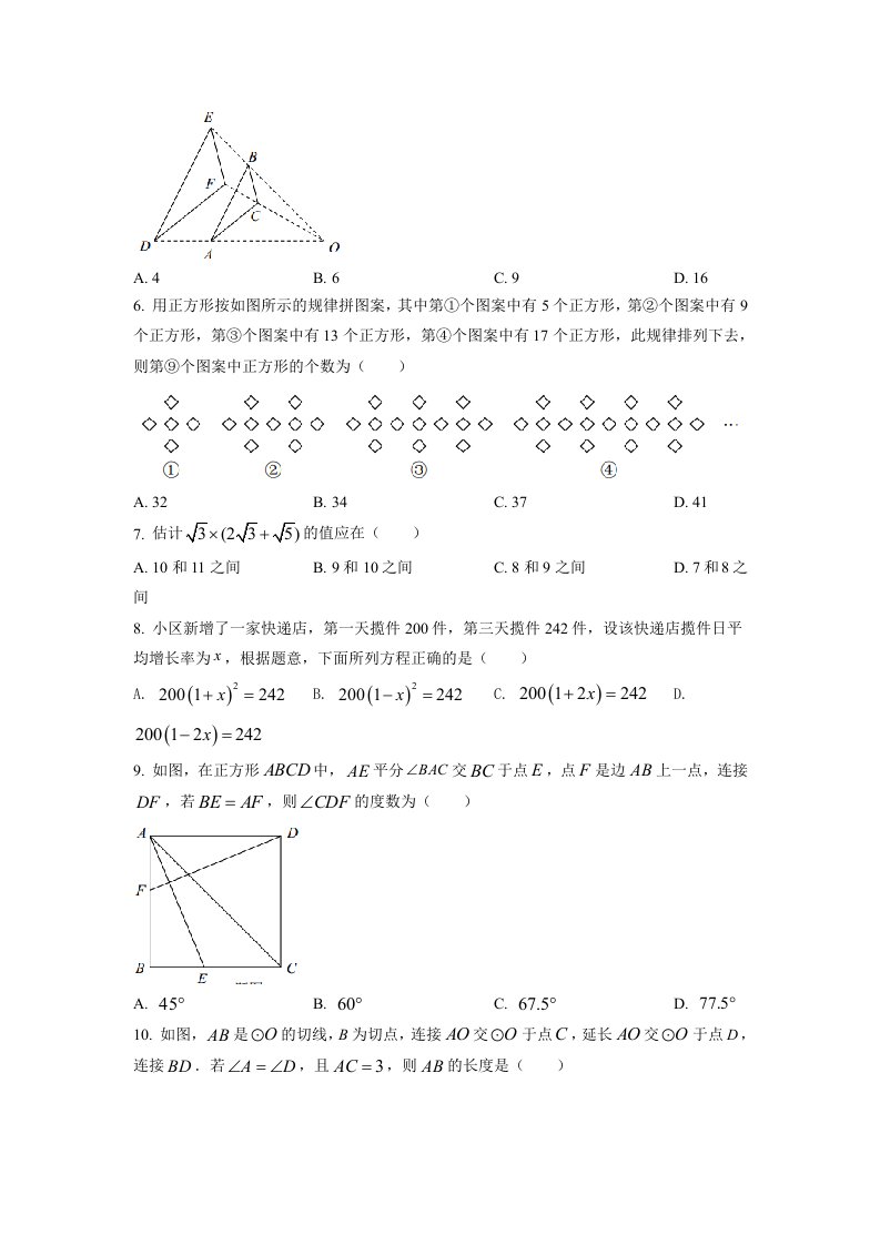 2022年重庆市中考数学真题(A卷)(空白卷)_共8页