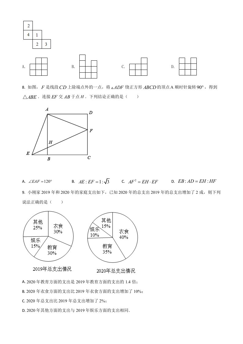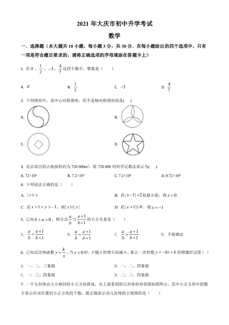 黑龙江省大庆市2021年中考数学真题(空白卷)_共8页