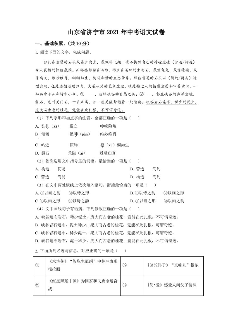 当前位置: 首页初中资源中考真题正文 山东省济宁市2021年中考语文试题(空白卷)_共8页 中考真题 2 周前 0 0 5 以上为部分内容预览,如需源文档请登录您的会员账号进行下载! 声明:本站所有文章,如无特殊说明或标注,均为本站原创发布。任何个人或组织,在未征得本站同意时,禁止复制、盗用、采集、发布本站内容到任何网站、书籍等各类媒体平台。如若本站内容侵犯了原著者的合法权益,可联系我们进行处理。 尚学资源永久会员 打赏 收藏 海报 链接