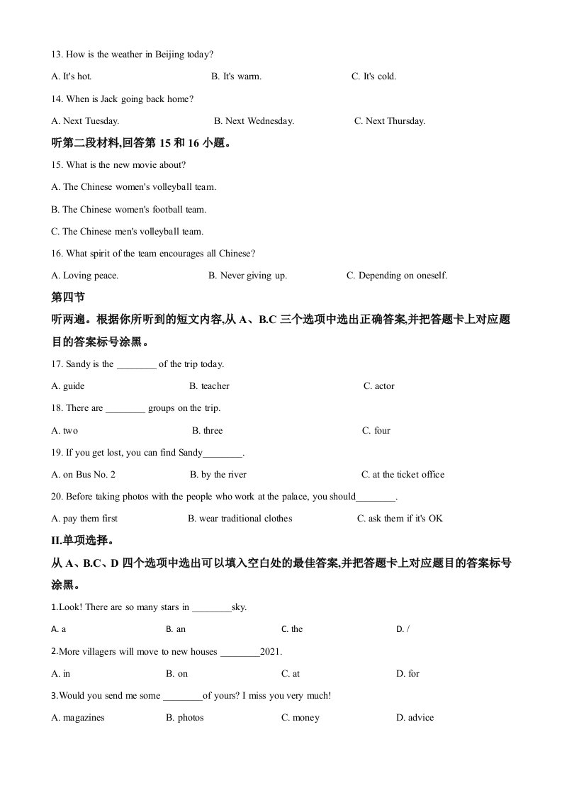 当前位置: 首页初中资源中考真题正文 重庆市2020年中考英语试题(A卷)(空白卷)_共13页 中考真题 2 周前 0 0 10 以上为部分内容预览,如需源文档请登录您的会员账号进行下载! 声明:本站所有文章,如无特殊说明或标注,均为本站原创发布。任何个人或组织,在未征得本站同意时,禁止复制、盗用、采集、发布本站内容到任何网站、书籍等各类媒体平台。如若本站内容侵犯了原著者的合法权益,可联系我们进行处理。 尚学资源永久会员 打赏 收藏 海报 链接
