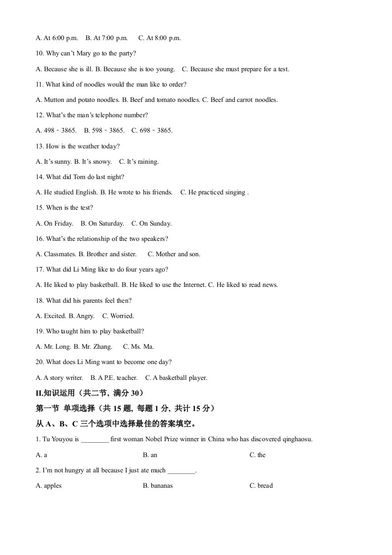 2022年湖南省湘西州中考英语真题(空白卷)_共12页