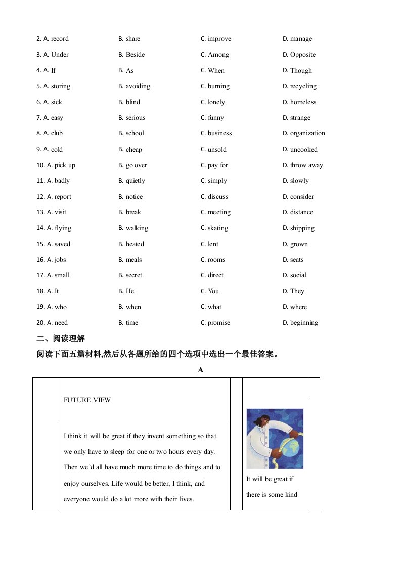 当前位置: 首页初中资源中考真题正文 浙江省嘉兴市2020年中考英语试题(空白卷)_共14页 中考真题 2 周前 0 0 10 以上为部分内容预览,如需源文档请登录您的会员账号进行下载! 声明:本站所有文章,如无特殊说明或标注,均为本站原创发布。任何个人或组织,在未征得本站同意时,禁止复制、盗用、采集、发布本站内容到任何网站、书籍等各类媒体平台。如若本站内容侵犯了原著者的合法权益,可联系我们进行处理。 尚学资源永久会员 打赏 收藏 海报 链接