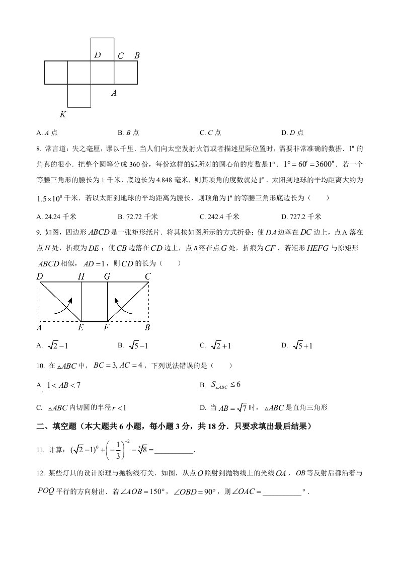 2023年山东省威海市中考数学真题(空白卷)_共8页