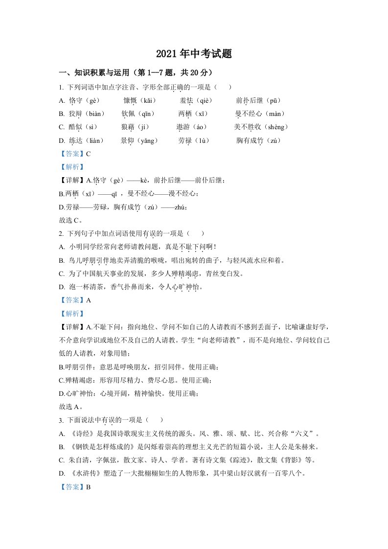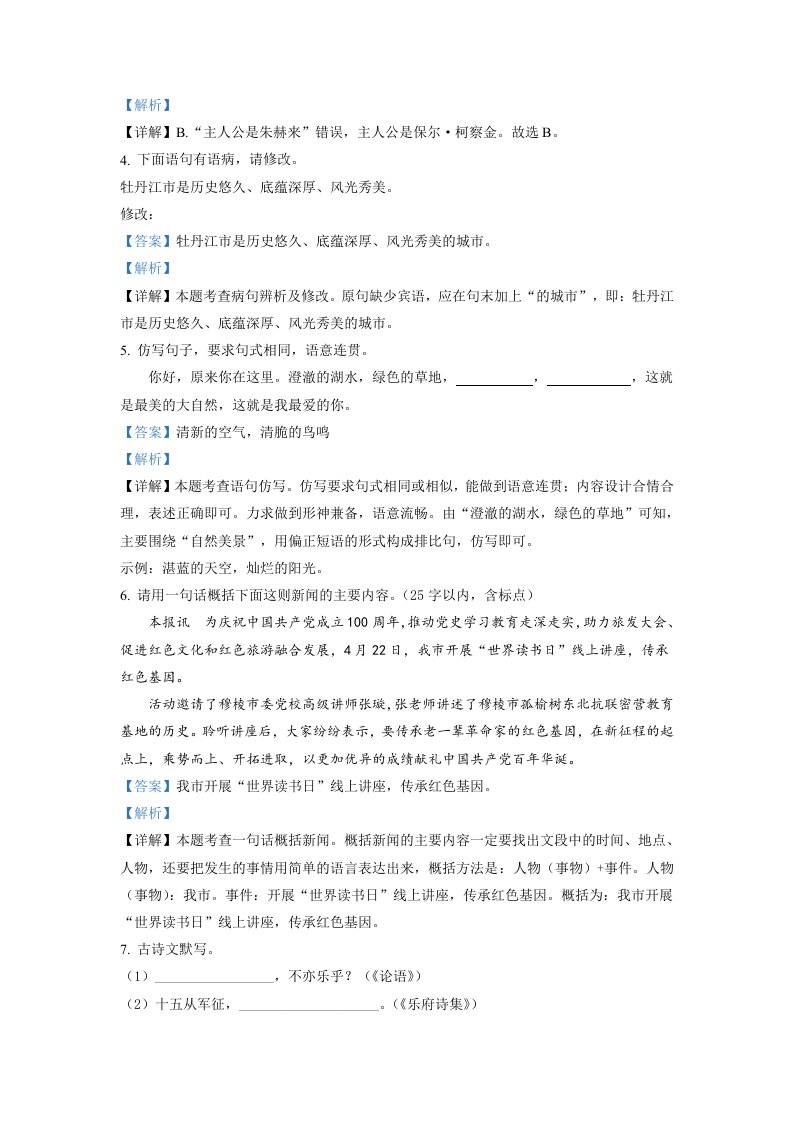 黑龙江省牡丹江市2021年中考语文试题(含答案)_共16页