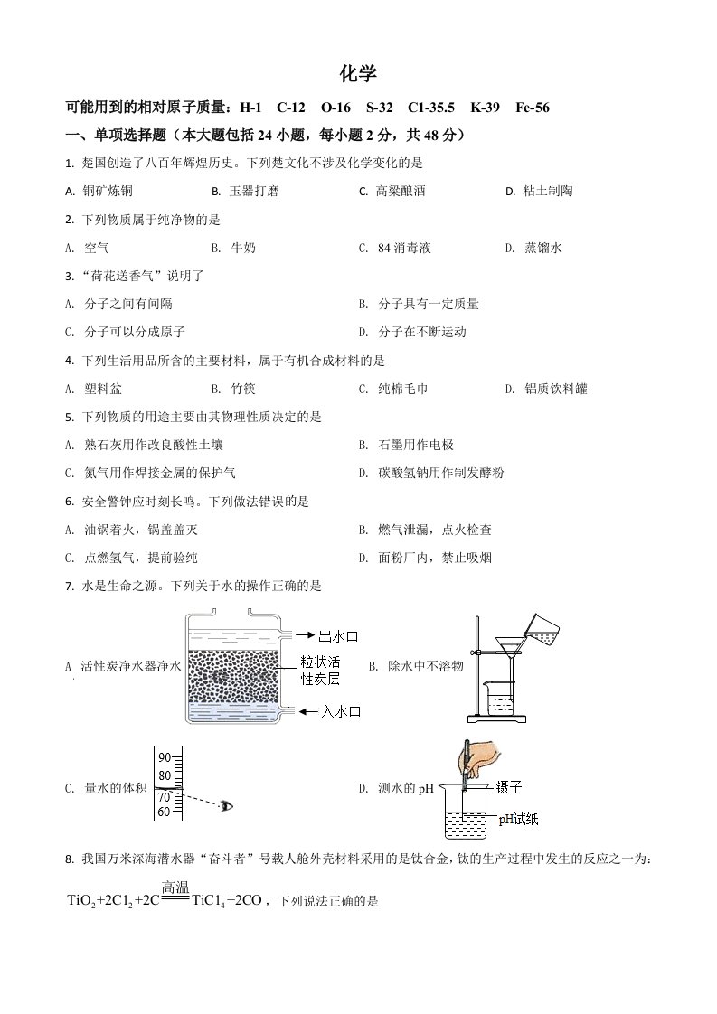 当前位置: 首页初中资源中考真题正文 湖北省荆州市2021年中考化学试题(空白卷)_共6页 中考真题 2 周前 0 0 5 以上为部分内容预览,如需源文档请登录您的会员账号进行下载! 声明:本站所有文章,如无特殊说明或标注,均为本站原创发布。任何个人或组织,在未征得本站同意时,禁止复制、盗用、采集、发布本站内容到任何网站、书籍等各类媒体平台。如若本站内容侵犯了原著者的合法权益,可联系我们进行处理。 尚学资源永久会员 打赏 收藏 海报 链接