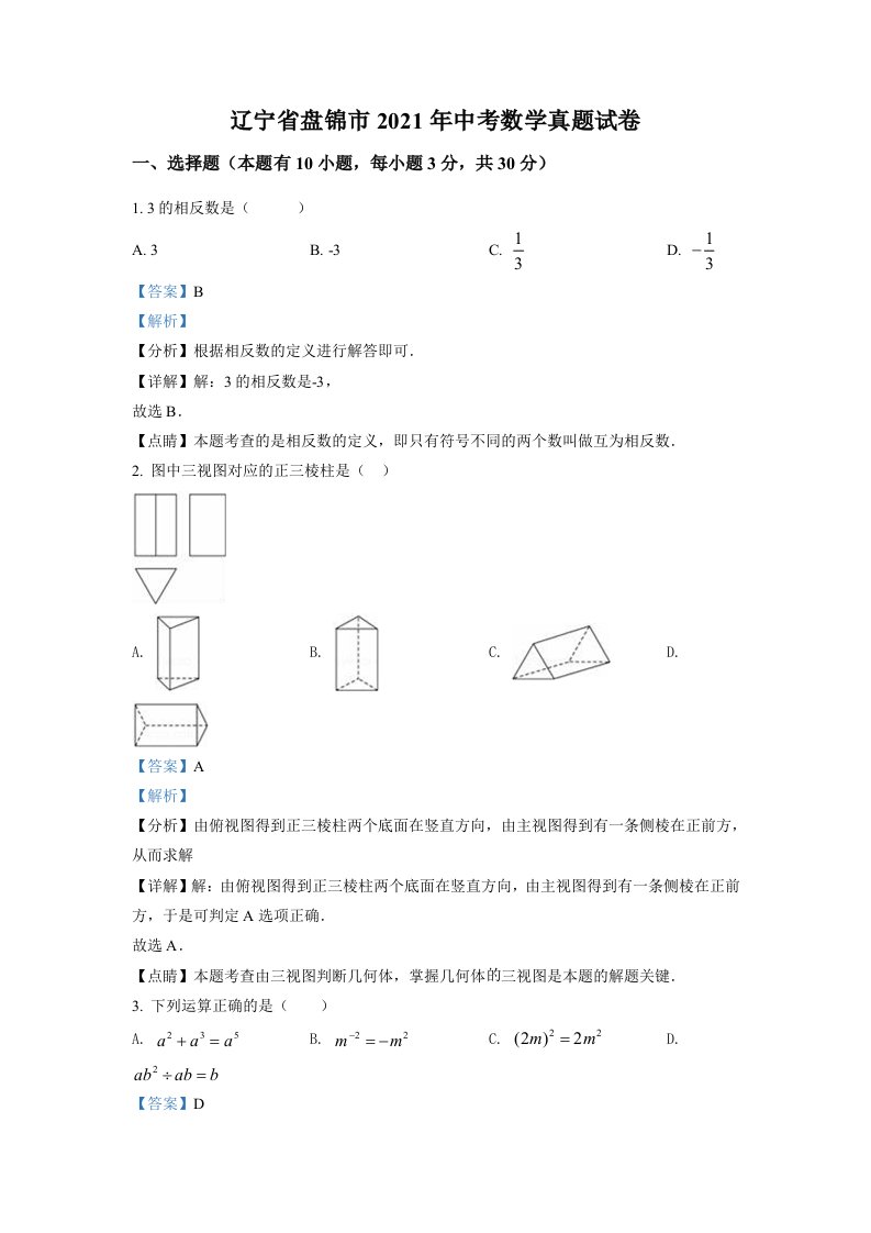 辽宁省盘锦市2021年中考数学真题试卷(含答案)_共28页