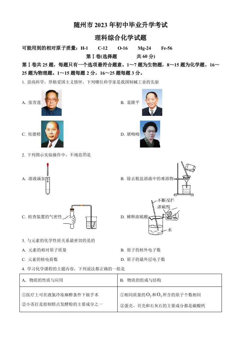 2023年湖北省随州市中考化学真题(空白卷)_共9页
