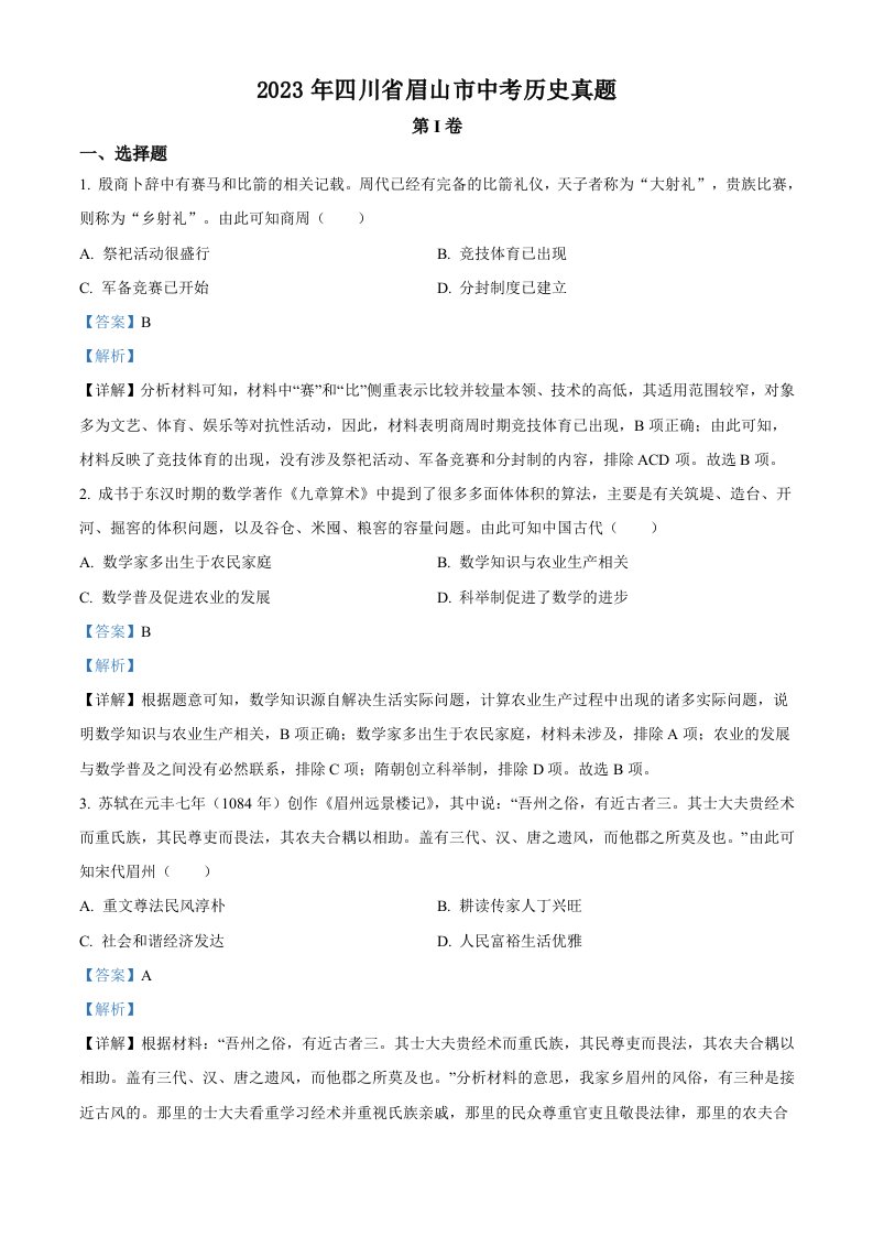 当前位置: 首页初中资源中考真题正文 2023年四川省眉山市中考历史真题(含答案)_共11页 中考真题 2 周前 0 0 10 以上为部分内容预览,如需源文档请登录您的会员账号进行下载! 声明:本站所有文章,如无特殊说明或标注,均为本站原创发布。任何个人或组织,在未征得本站同意时,禁止复制、盗用、采集、发布本站内容到任何网站、书籍等各类媒体平台。如若本站内容侵犯了原著者的合法权益,可联系我们进行处理。 尚学资源永久会员 打赏 收藏 海报 链接
