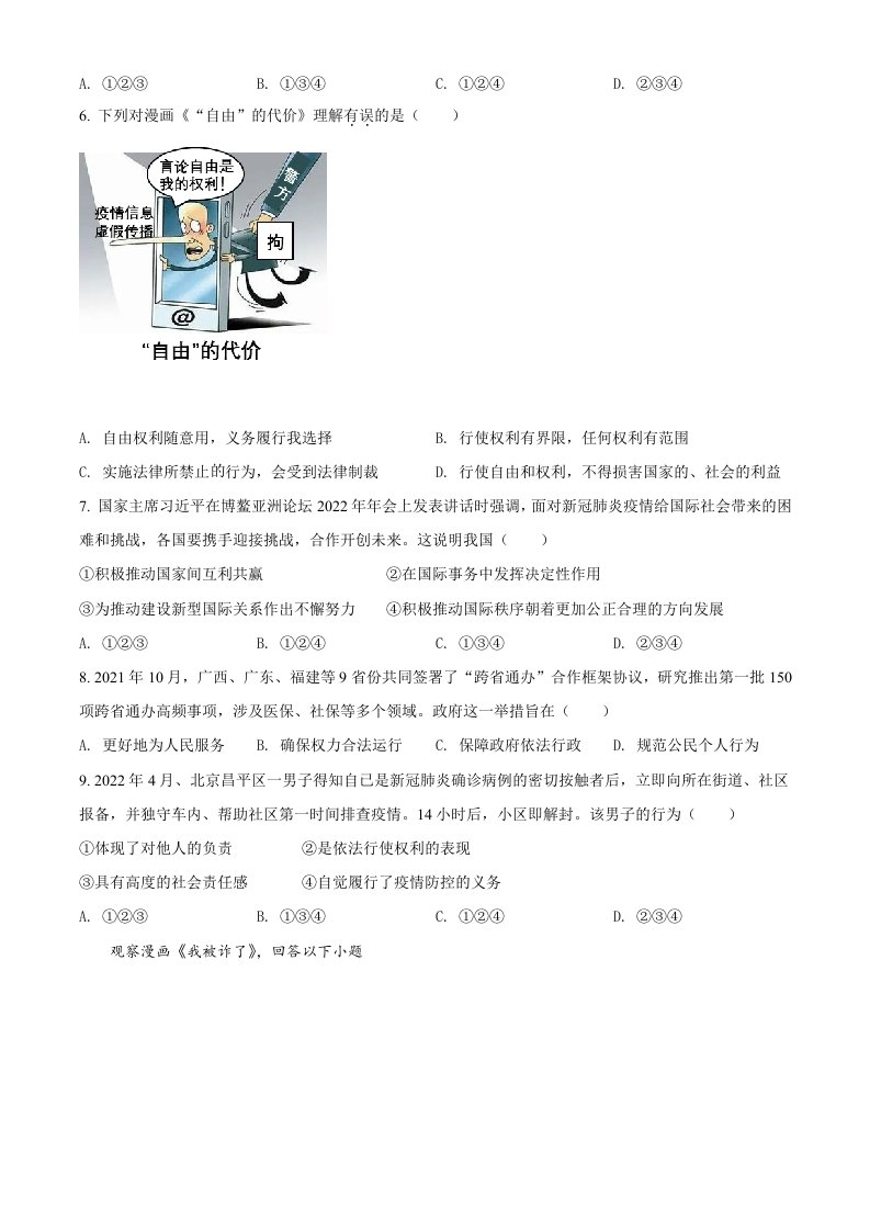 2022年广西贺州市中考道德与法治真题(空白卷)_共7页
