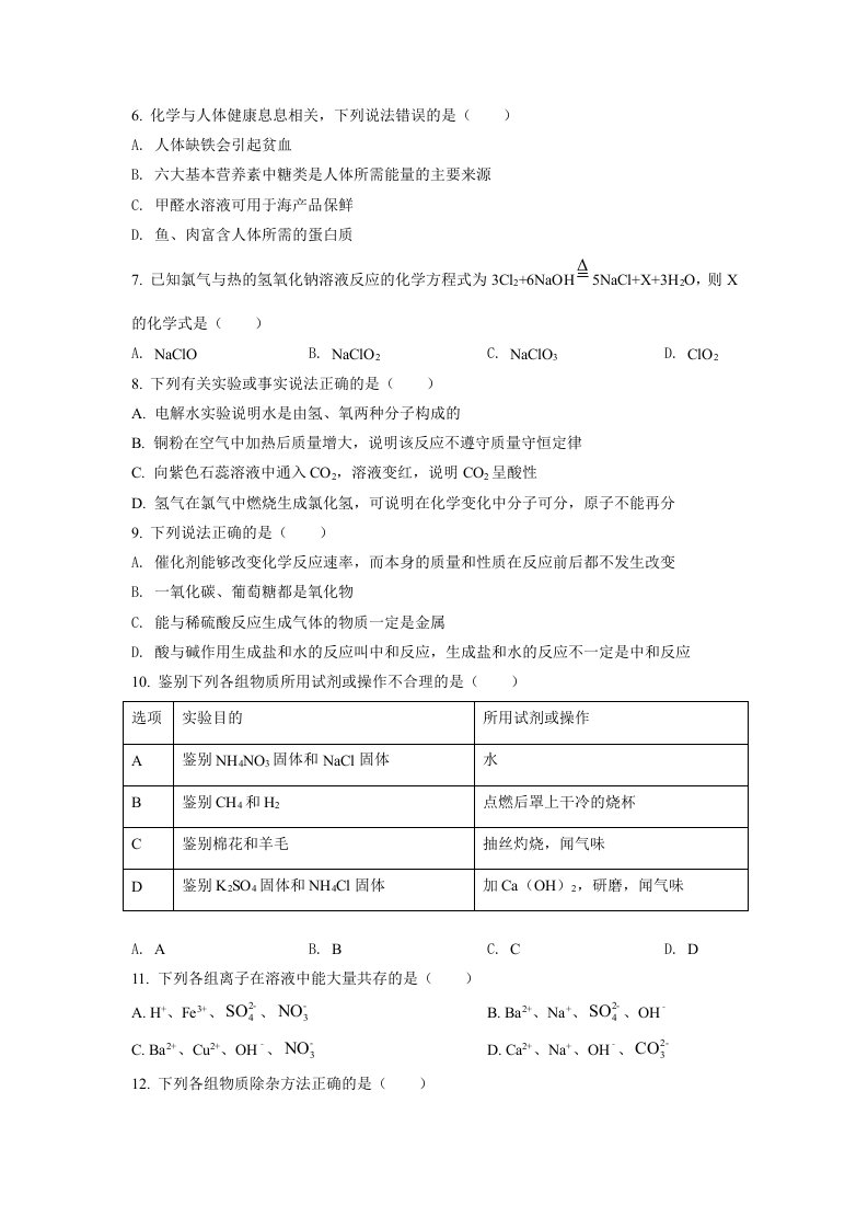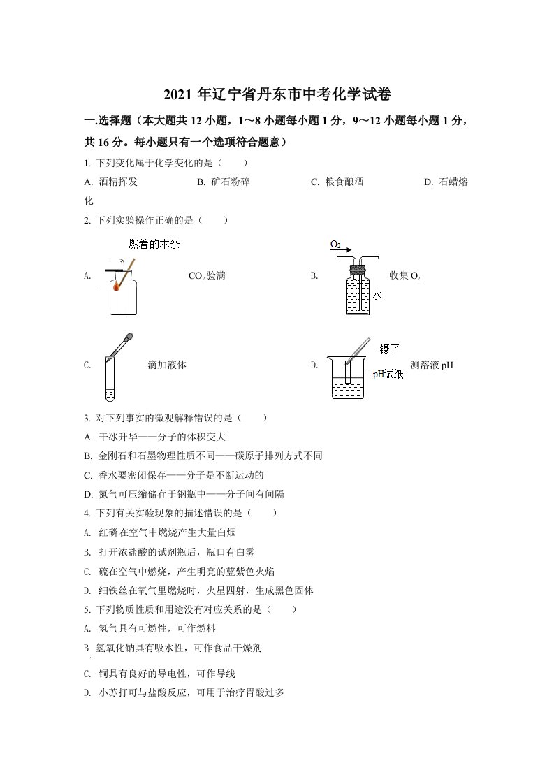 辽宁省丹东市2021年中考化学试题(空白卷)_共7页