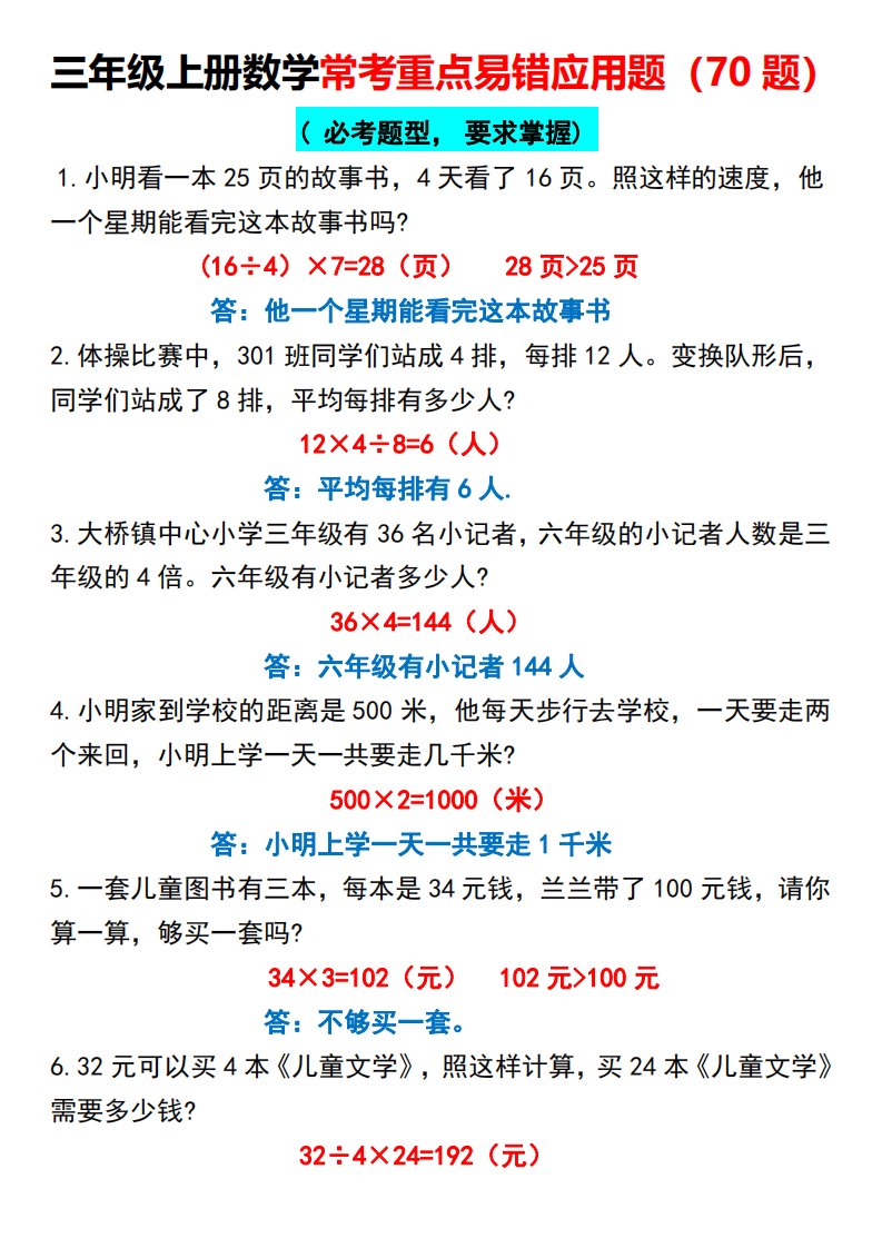 当前位置: 首页小学资源小学三年级正文 三年级上册数学常考重点易错应用题70题_共14页 小学三年级 2 周前 0 0 10 以上为部分内容预览,如需源文档请登录您的会员账号进行下载! 声明:本站所有文章,如无特殊说明或标注,均为本站原创发布。任何个人或组织,在未征得本站同意时,禁止复制、盗用、采集、发布本站内容到任何网站、书籍等各类媒体平台。如若本站内容侵犯了原著者的合法权益,可联系我们进行处理。 尚学资源永久会员 打赏 收藏 海报 链接