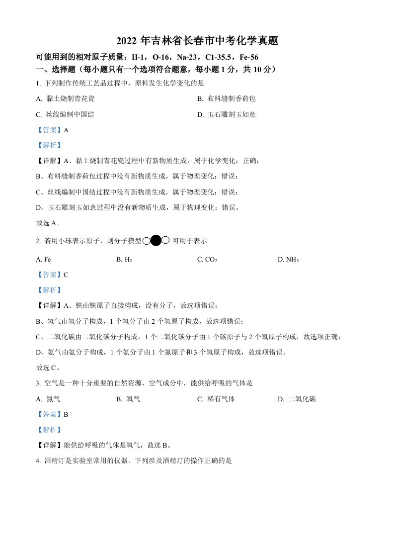 2022年吉林省长春市中考化学真题(含答案)_共17页