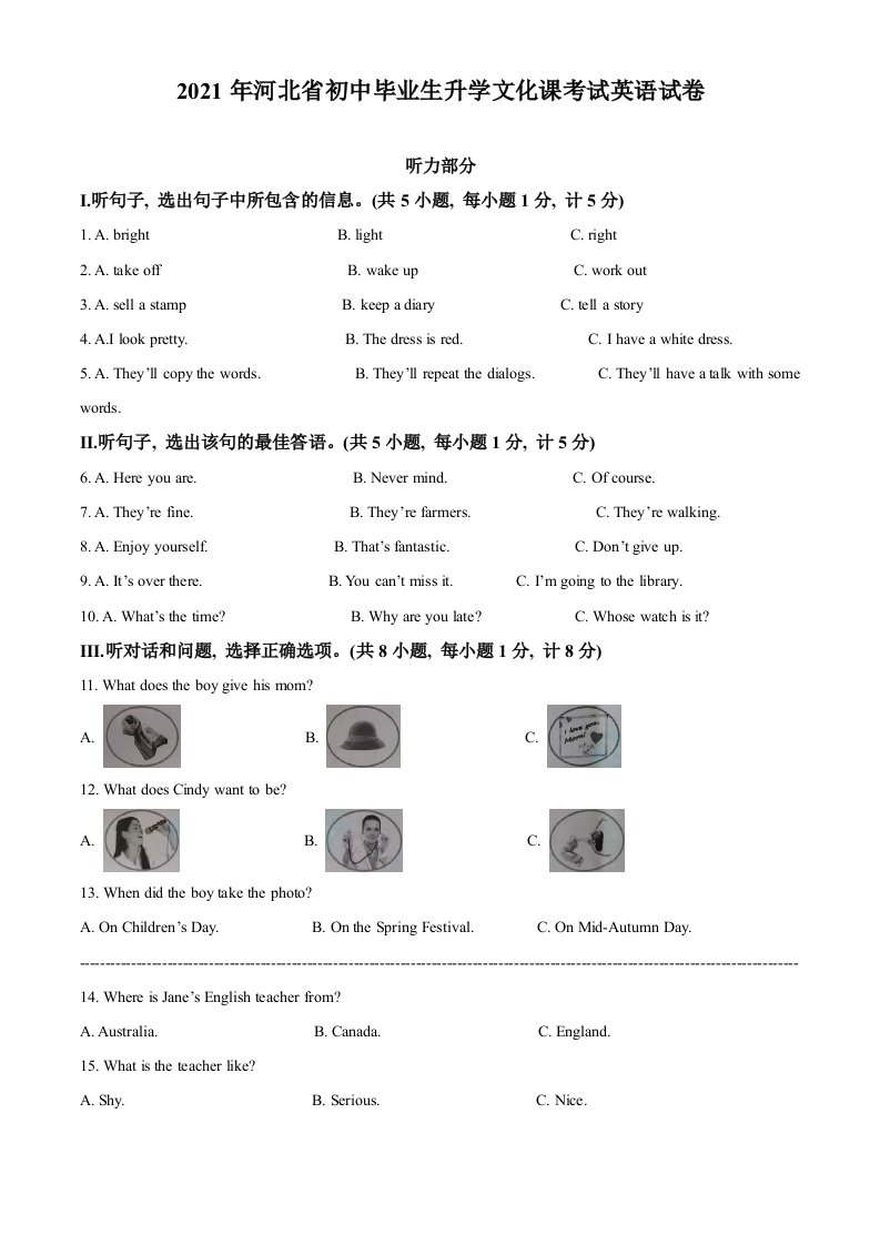 当前位置: 首页初中资源中考真题正文 河北省2021年中考英语试题(空白卷)_共12页 中考真题 2 周前 0 0 10 以上为部分内容预览,如需源文档请登录您的会员账号进行下载! 声明:本站所有文章,如无特殊说明或标注,均为本站原创发布。任何个人或组织,在未征得本站同意时,禁止复制、盗用、采集、发布本站内容到任何网站、书籍等各类媒体平台。如若本站内容侵犯了原著者的合法权益,可联系我们进行处理。 尚学资源永久会员 打赏 收藏 海报 链接