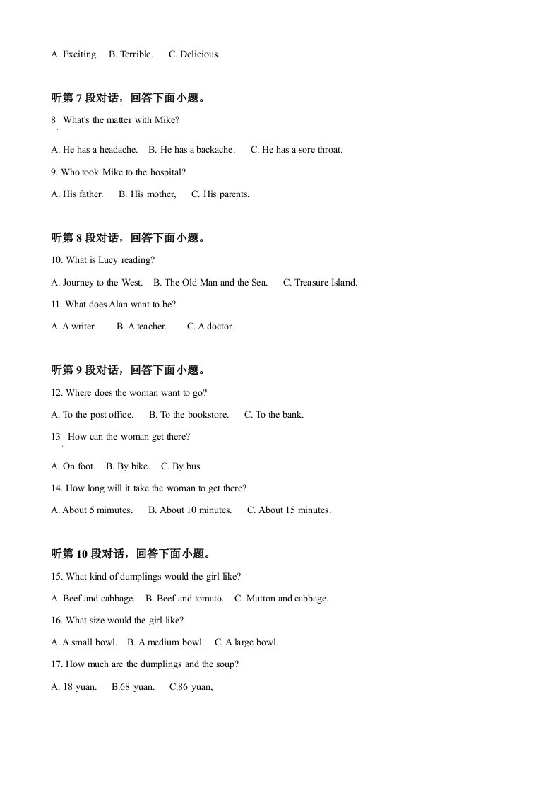 湖北省黄冈市2020年中考英语试题(空白卷)_共13页
