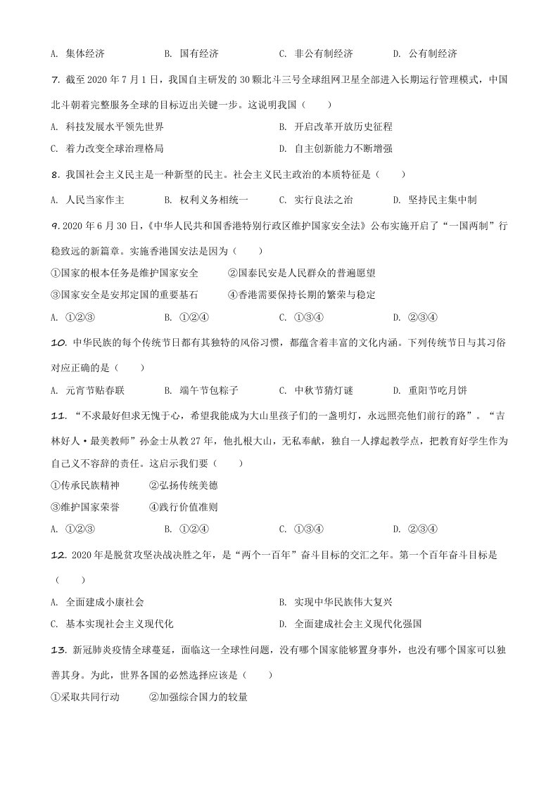 当前位置: 首页初中资源中考真题正文 吉林省2020年中考道德与法治试题(空白卷)_共6页 中考真题 2 周前 0 0 5 以上为部分内容预览,如需源文档请登录您的会员账号进行下载! 声明:本站所有文章,如无特殊说明或标注,均为本站原创发布。任何个人或组织,在未征得本站同意时,禁止复制、盗用、采集、发布本站内容到任何网站、书籍等各类媒体平台。如若本站内容侵犯了原著者的合法权益,可联系我们进行处理。 尚学资源永久会员 打赏 收藏 海报 链接