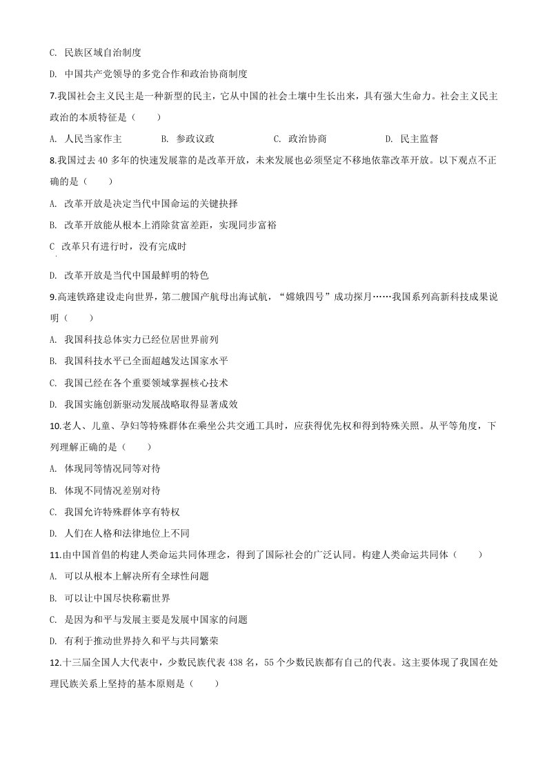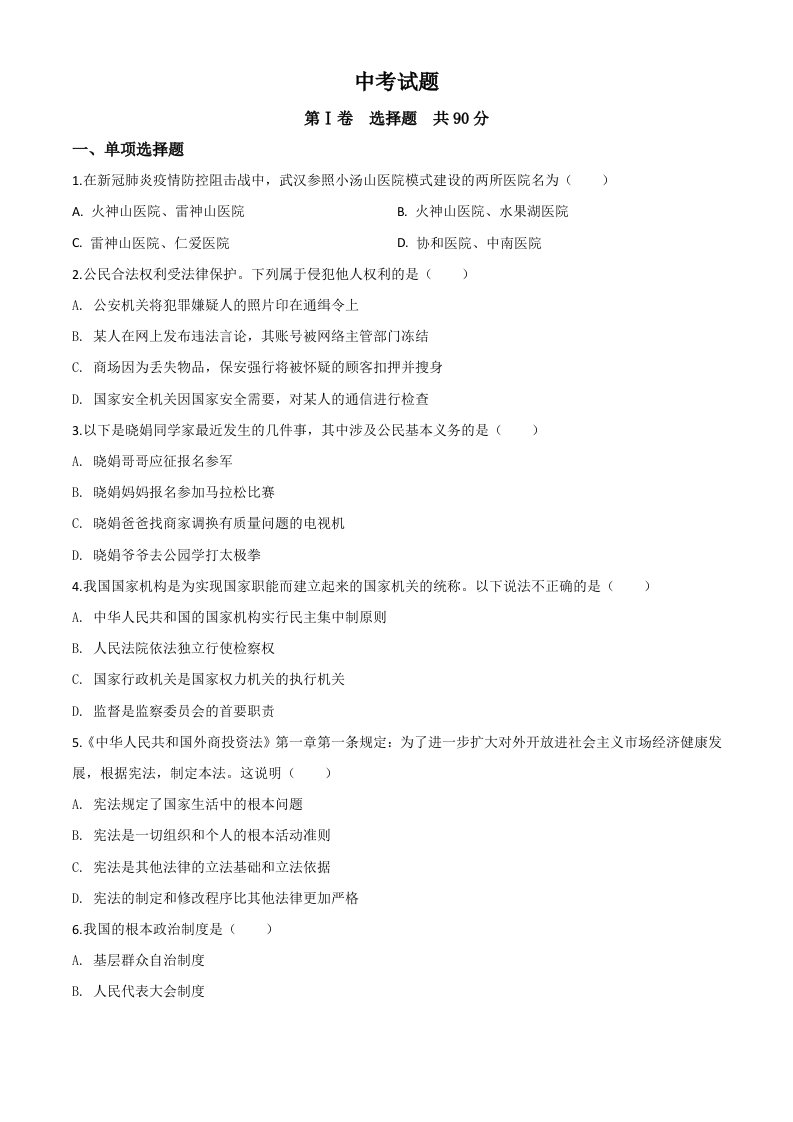 四川省巴中市2020年中考道德与法治试题(空白卷)_共5页