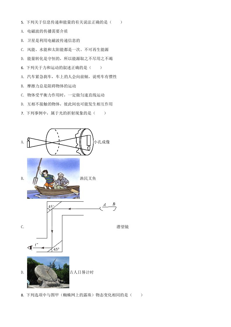 湖北省黄石市2021年中考理综物理试题(空白卷)_共11页