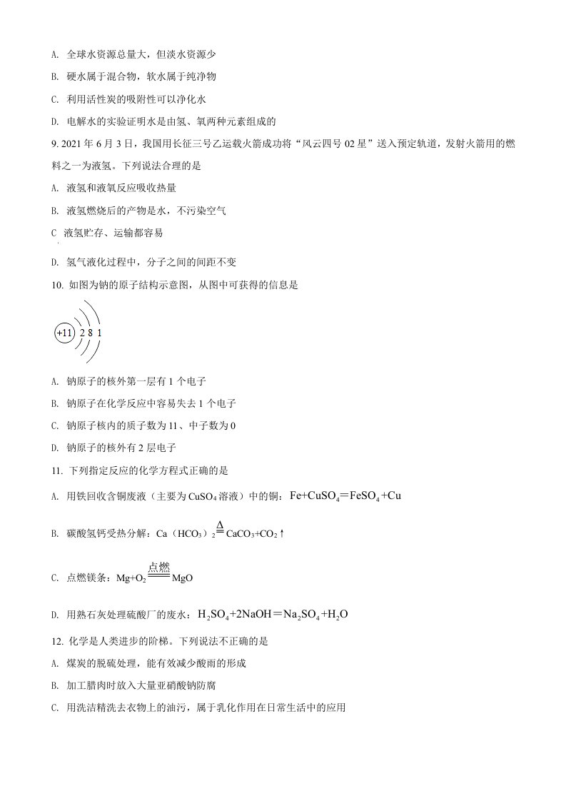 湖南省益阳市2021年中考化学试题(空白卷)_共10页