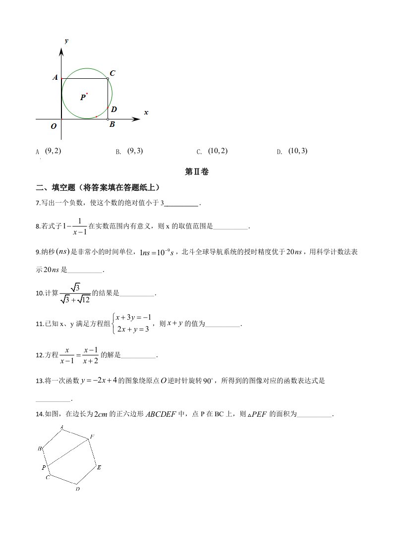 江苏省南京市2020年中考数学试题(空白卷)_共8页