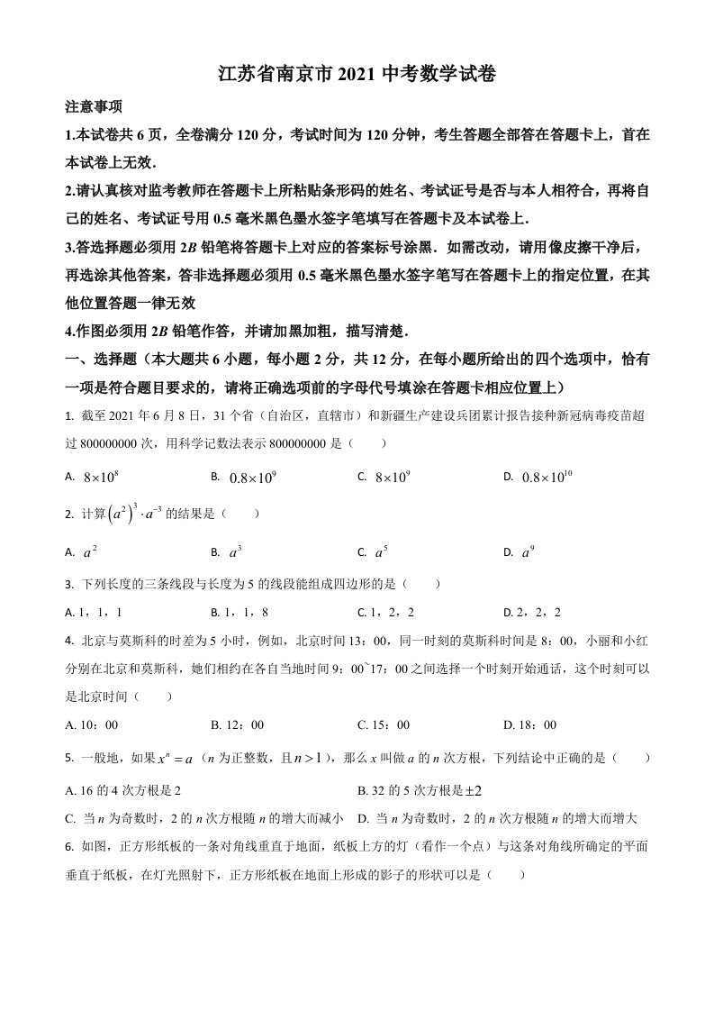当前位置: 首页初中资源中考真题正文 江苏省南京市2021年中考数学试卷(空白卷)_共8页 中考真题 1 周前 0 0 5 以上为部分内容预览,如需源文档请登录您的会员账号进行下载! 声明:本站所有文章,如无特殊说明或标注,均为本站原创发布。任何个人或组织,在未征得本站同意时,禁止复制、盗用、采集、发布本站内容到任何网站、书籍等各类媒体平台。如若本站内容侵犯了原著者的合法权益,可联系我们进行处理。 尚学资源永久会员 打赏 收藏 海报 链接