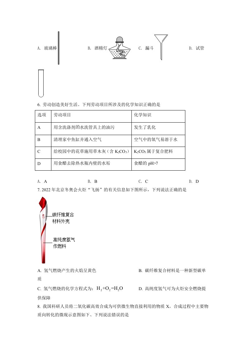 2022年安徽省中考化学真题(空白卷)_共7页