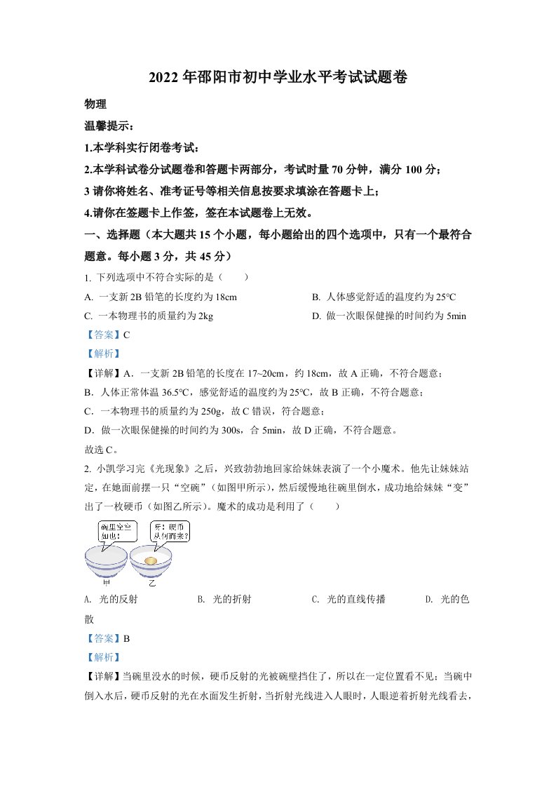 当前位置: 首页初中资源中考真题正文 2022年湖南省邵阳市中考物理试题(含答案)_共17页 中考真题 2 周前 0 0 10 以上为部分内容预览,如需源文档请登录您的会员账号进行下载! 声明:本站所有文章,如无特殊说明或标注,均为本站原创发布。任何个人或组织,在未征得本站同意时,禁止复制、盗用、采集、发布本站内容到任何网站、书籍等各类媒体平台。如若本站内容侵犯了原著者的合法权益,可联系我们进行处理。 尚学资源永久会员 打赏 收藏 海报 链接