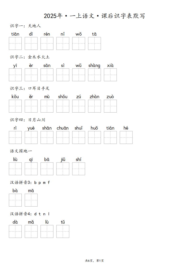 当前位置: 首页小学资源小学一年级正文 【默写-识字表】2025年一上语文(含答案)_共12页 小学一年级 2 周前 0 0 10 以上为部分内容预览,如需源文档请登录您的会员账号进行下载! 声明:本站所有文章,如无特殊说明或标注,均为本站原创发布。任何个人或组织,在未征得本站同意时,禁止复制、盗用、采集、发布本站内容到任何网站、书籍等各类媒体平台。如若本站内容侵犯了原著者的合法权益,可联系我们进行处理。 尚学资源永久会员 打赏 收藏 海报 链接