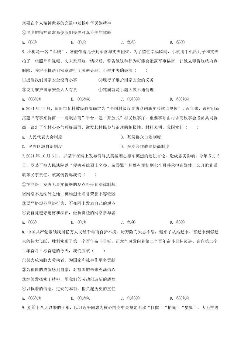 2022年四川省德阳市中考道德与法治真题(空白卷)_共6页