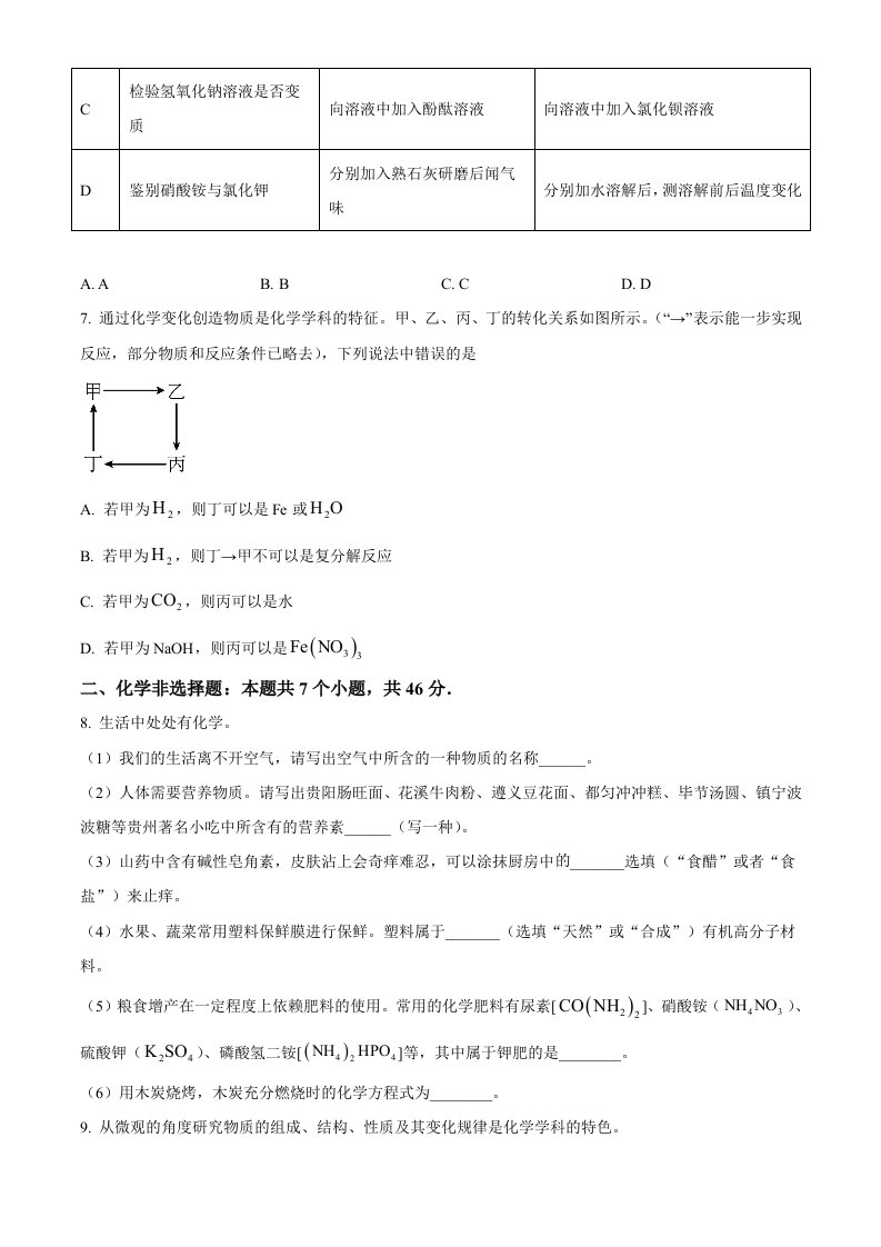 2023年贵州省中考化学真题(空白卷)_共7页