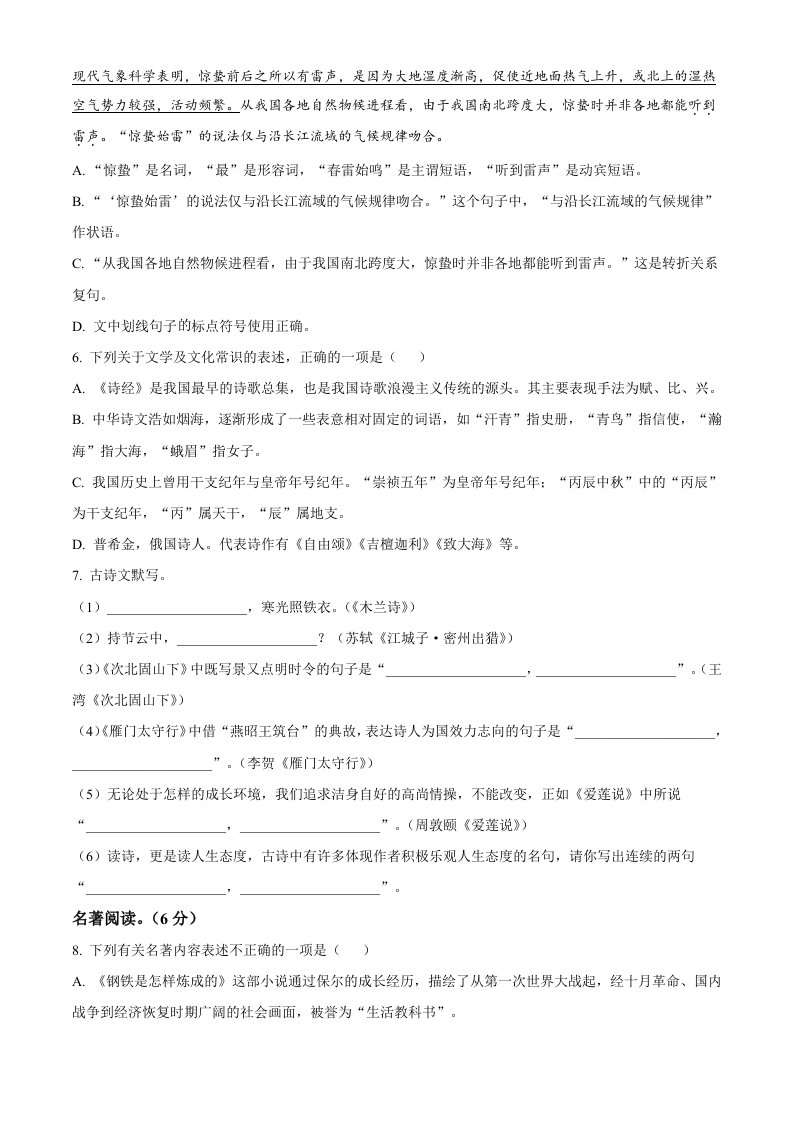 当前位置: 首页初中资源中考真题正文 2023年黑龙江省齐齐哈尔市中考语文真题(空白卷)_共8页 中考真题 2 周前 0 0 5 以上为部分内容预览,如需源文档请登录您的会员账号进行下载! 声明:本站所有文章,如无特殊说明或标注,均为本站原创发布。任何个人或组织,在未征得本站同意时,禁止复制、盗用、采集、发布本站内容到任何网站、书籍等各类媒体平台。如若本站内容侵犯了原著者的合法权益,可联系我们进行处理。 尚学资源永久会员 打赏 收藏 海报 链接