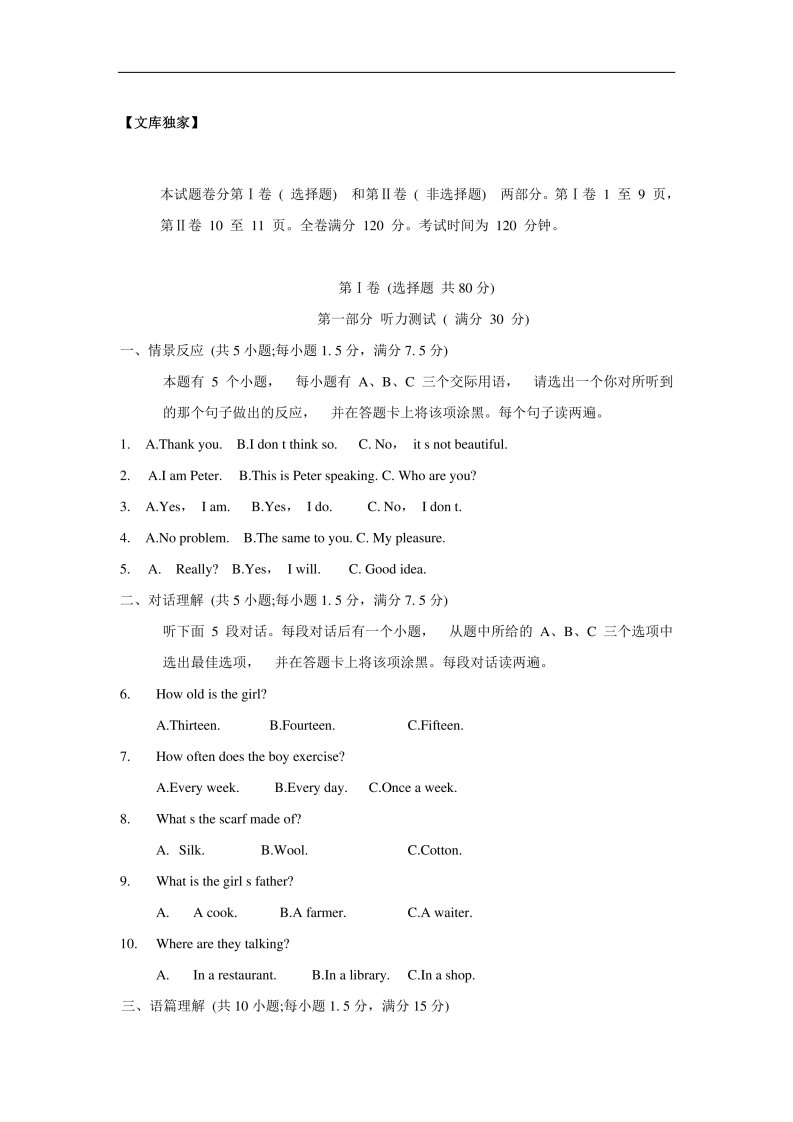 当前位置: 首页初中资源中考真题正文 四川雅安2020中考模拟试题英语卷(含答案)_共17页 中考真题 2 周前 0 0 10 以上为部分内容预览,如需源文档请登录您的会员账号进行下载! 声明:本站所有文章,如无特殊说明或标注,均为本站原创发布。任何个人或组织,在未征得本站同意时,禁止复制、盗用、采集、发布本站内容到任何网站、书籍等各类媒体平台。如若本站内容侵犯了原著者的合法权益,可联系我们进行处理。 尚学资源永久会员 打赏 收藏 海报 链接