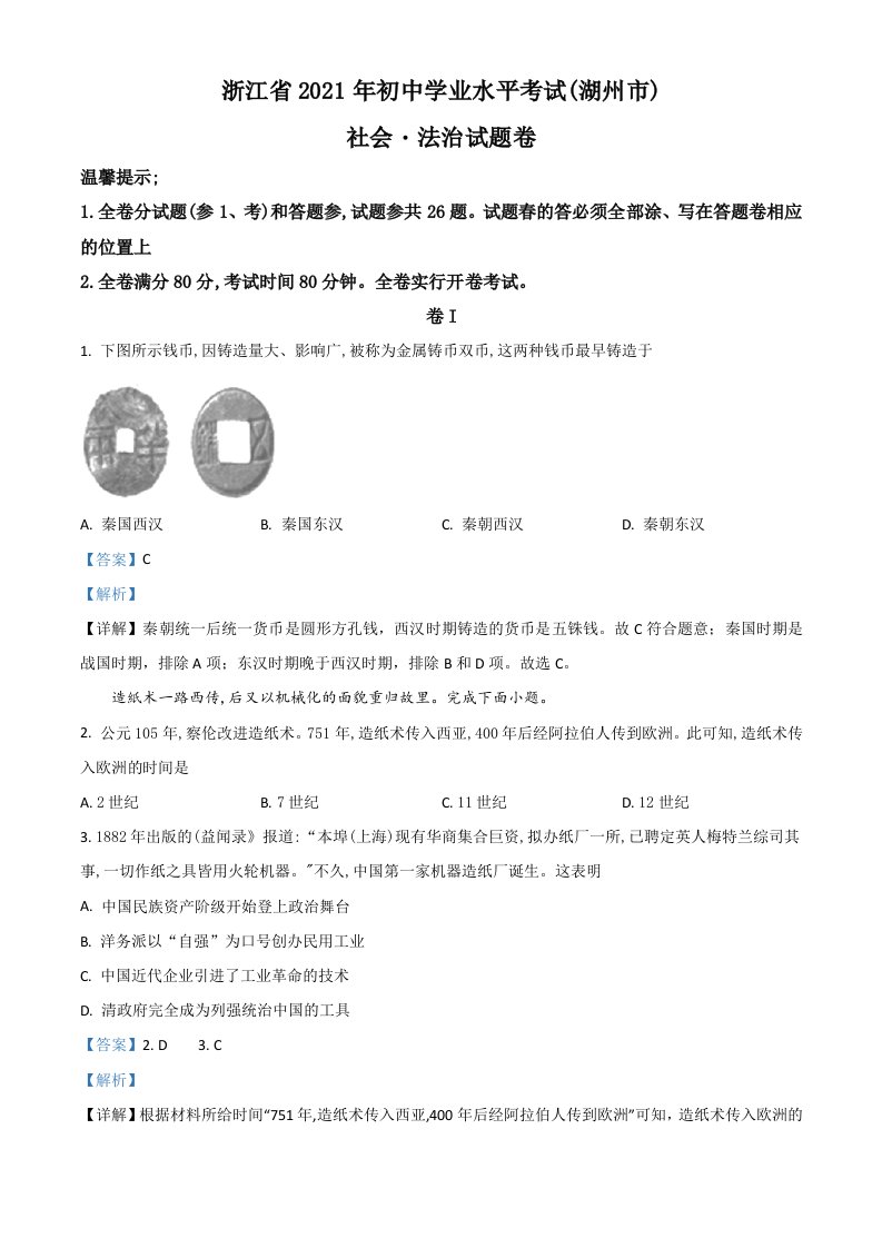 当前位置: 首页初中资源中考真题正文 浙江省湖州市2021年中考历史试题(含答案)_共6页 中考真题 2 周前 0 0 5 以上为部分内容预览,如需源文档请登录您的会员账号进行下载! 声明:本站所有文章,如无特殊说明或标注,均为本站原创发布。任何个人或组织,在未征得本站同意时,禁止复制、盗用、采集、发布本站内容到任何网站、书籍等各类媒体平台。如若本站内容侵犯了原著者的合法权益,可联系我们进行处理。 尚学资源永久会员 打赏 收藏 海报 链接