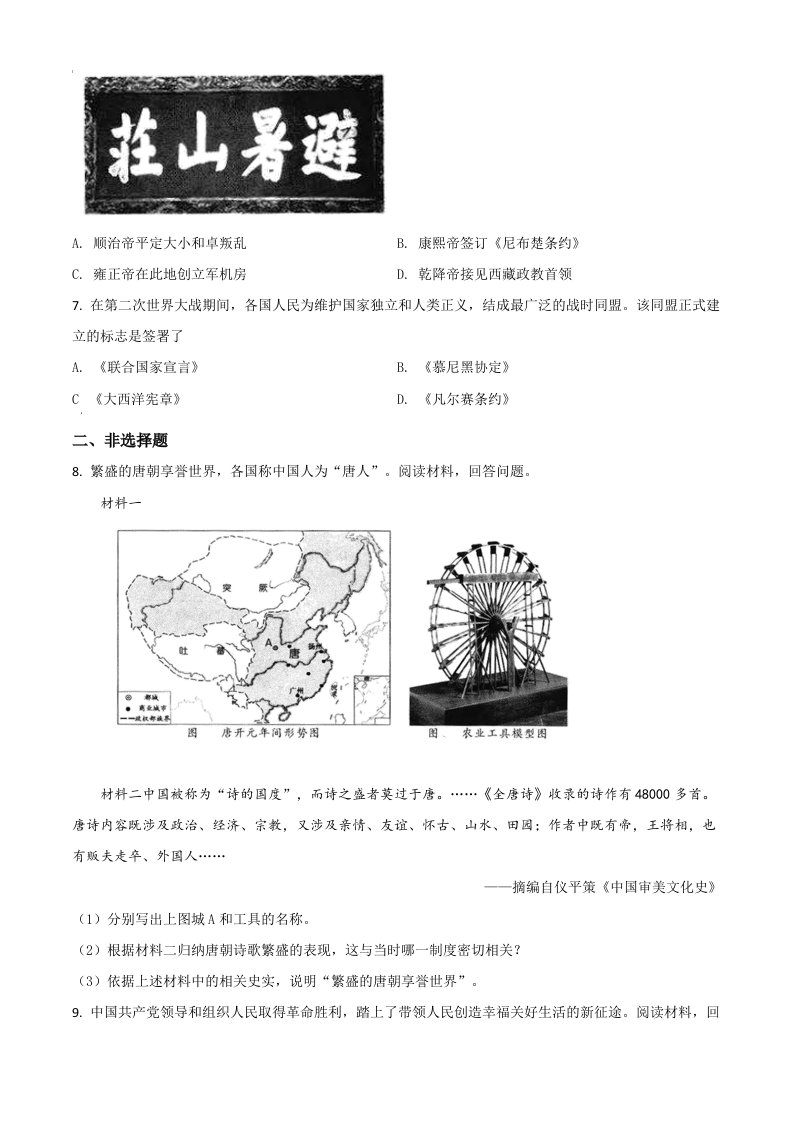 浙江省衢州市2021年中考历史试题(空白卷)_共4页