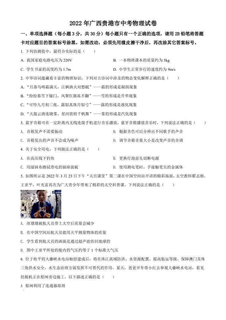 当前位置: 首页初中资源中考真题正文 2022年广西贵港市中考物理试题(空白卷)_共10页 中考真题 2 周前 0 0 5 以上为部分内容预览,如需源文档请登录您的会员账号进行下载! 声明:本站所有文章,如无特殊说明或标注,均为本站原创发布。任何个人或组织,在未征得本站同意时,禁止复制、盗用、采集、发布本站内容到任何网站、书籍等各类媒体平台。如若本站内容侵犯了原著者的合法权益,可联系我们进行处理。 尚学资源永久会员 打赏 收藏 海报 链接
