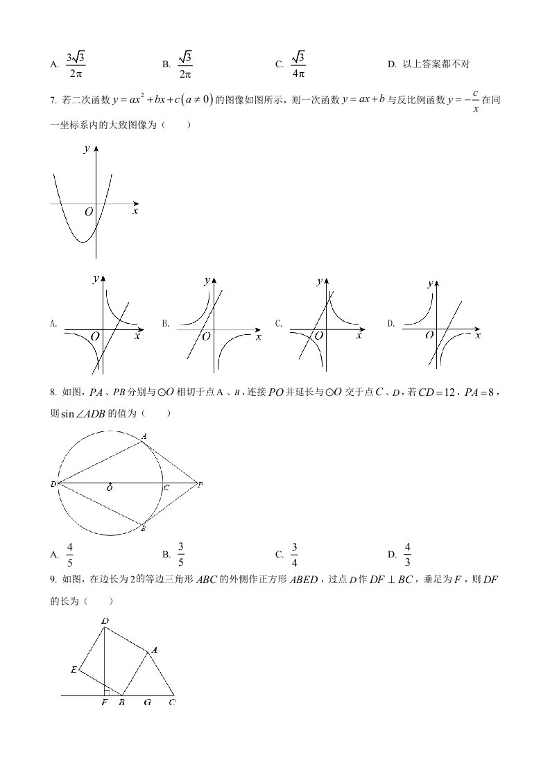 2022年贵州省黔东南州中考数学真题(空白卷)_共8页