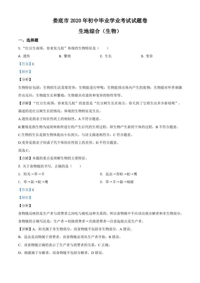 当前位置: 首页初中资源中考真题正文 湖南娄底市2020年中考生物试题(含答案)_共32页 中考真题 2 周前 0 0 15 以上为部分内容预览,如需源文档请登录您的会员账号进行下载! 声明:本站所有文章,如无特殊说明或标注,均为本站原创发布。任何个人或组织,在未征得本站同意时,禁止复制、盗用、采集、发布本站内容到任何网站、书籍等各类媒体平台。如若本站内容侵犯了原著者的合法权益,可联系我们进行处理。 尚学资源永久会员 打赏 收藏 海报 链接