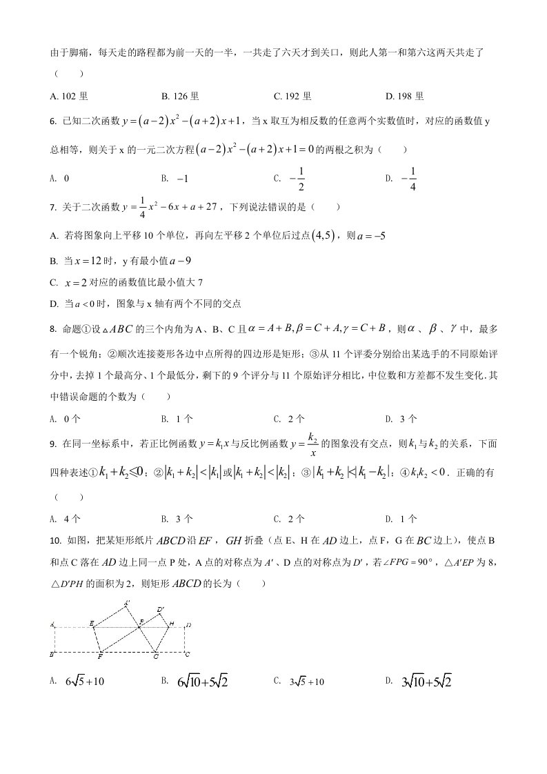 内蒙古呼和浩特市2020年中考数学试题(空白卷)_共8页