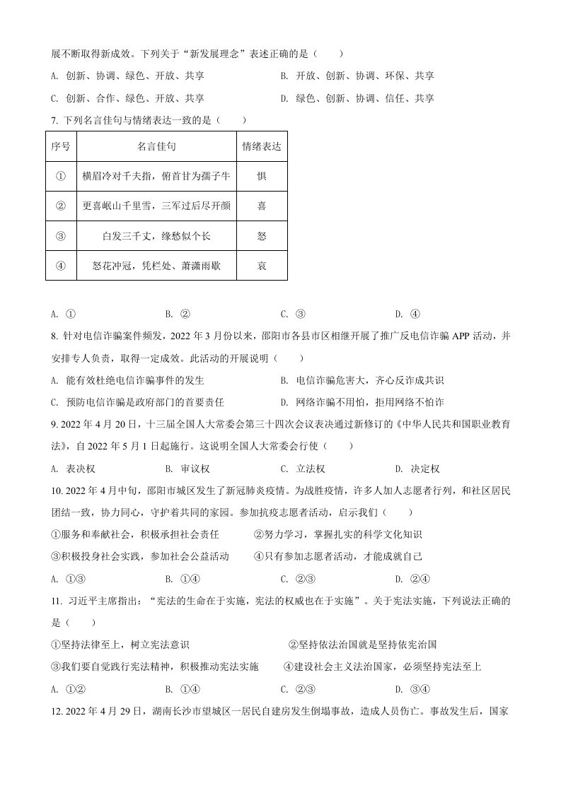 当前位置: 首页初中资源中考真题正文 2022年湖南省邵阳市中考道德与法治真题(空白卷)_共7页 中考真题 2 周前 0 0 5 以上为部分内容预览,如需源文档请登录您的会员账号进行下载! 声明:本站所有文章,如无特殊说明或标注,均为本站原创发布。任何个人或组织,在未征得本站同意时,禁止复制、盗用、采集、发布本站内容到任何网站、书籍等各类媒体平台。如若本站内容侵犯了原著者的合法权益,可联系我们进行处理。 尚学资源永久会员 打赏 收藏 海报 链接