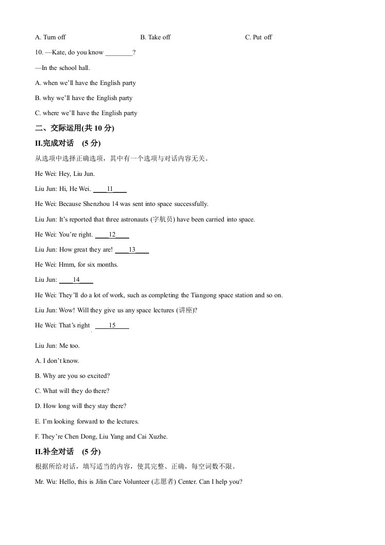 2022年吉林省中考英语真题(空白卷)_共12页