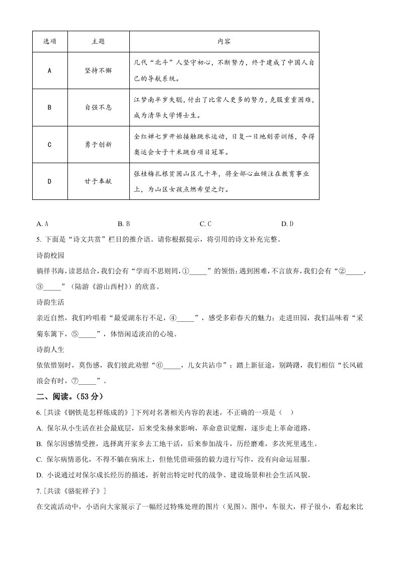 2022年山东省青岛市中考语文试题(空白卷)_共10页