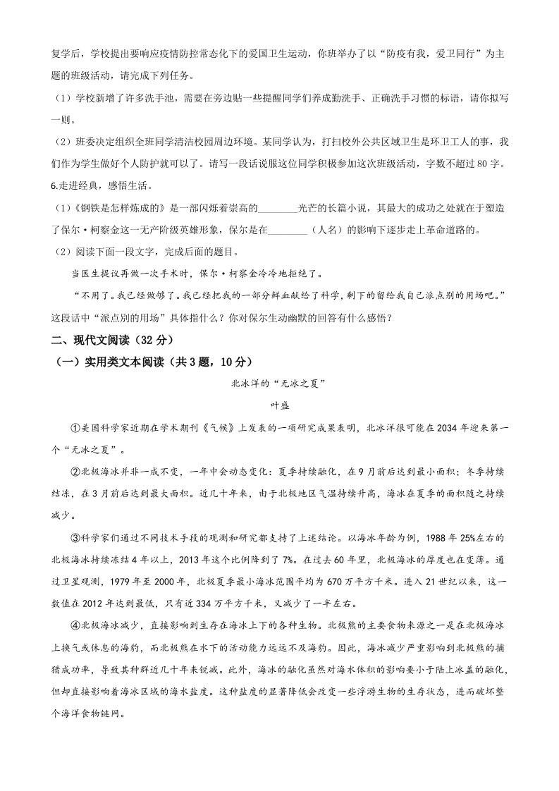 湖北省咸宁市2020年中考语文试题(空白卷)_共9页