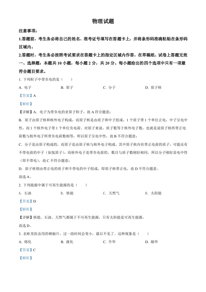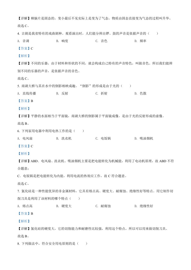 2022年吉林省长春市中考物理试题(含答案)_共14页